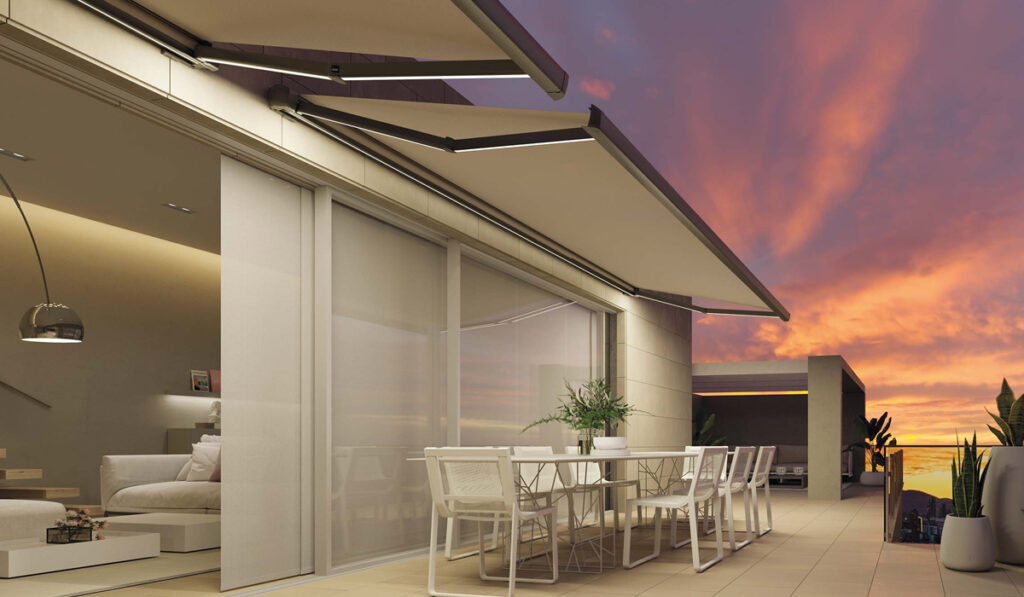 Trabajamos con materiales técnicos de alta resistencia, tejidos acrílicos y microperforados, estructuras de aluminio y mecanismos de alta calidad, que garantizan un rendimiento óptimo incluso en condiciones climáticas exigentes.